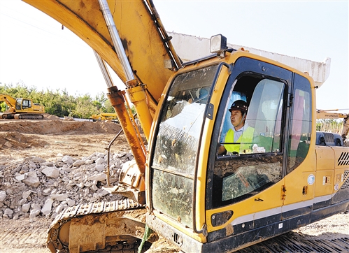 5月1日,河北省邢台市守敬路七里河大桥工地,中建路桥集团六公司挖掘机操作工刘兴林在施工作业。刘兴林坚持26年钻研挖掘机操作技术,曾在全国竞赛中取得优异成绩,被授予“全国交通技术能手”称号。 田晓丽摄(中经视觉)