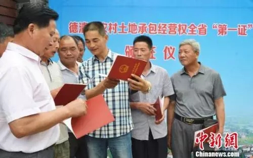 △村民代表领到新的农村土地承包经营权证
