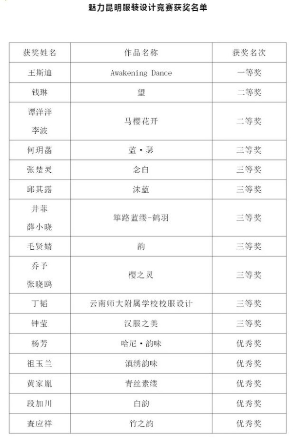 为庆祝中华人民共和国成立七十周年,激发昆明地区职工学技术、练技能、做贡献的热情,广泛挖掘文化创意领域中的新生代设计师原创力量,引导文化创意设计紧贴生活,将传统文化与现代科技,艺术价值与实用功能,创意设计与产业需求相结合,昆明市委宣传部、昆明市总工会、昆明市人力资源和社会保障局共同举办了2019第二届金茶花文化创意设计大赛之“当好主人翁、建功新时代”为主题的昆明地区职工文化创意职业技能竞赛。经过宣传推广、报名初赛、现场展示、决赛评审等环节,产生了五大竞赛领域的各个奖项,现将获奖名单公布如下: