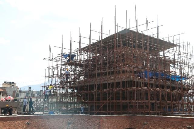 加德满都的杜巴广场是一处古老的皇家广场,现存十多座宫殿庭院,包括高30米的九层神庙。2015年4月25日的大地震,使九层神庙严重受损。此后,九层神庙保护修复成为中国政府援尼震后重建的重点项目。