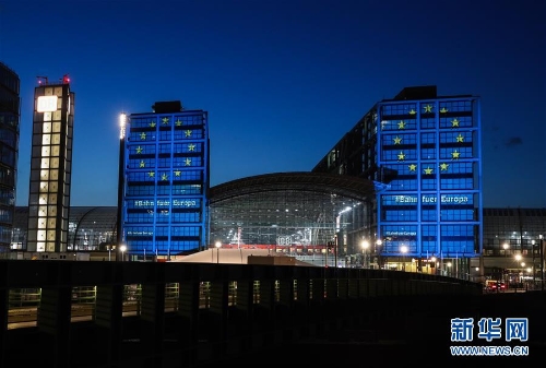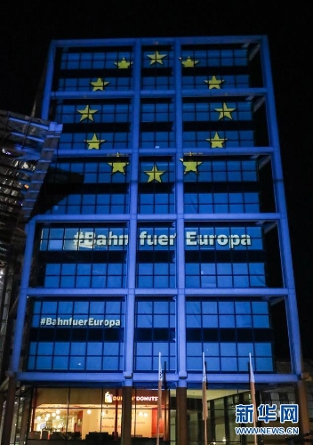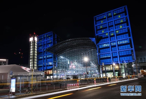 欧盟主题灯光点亮柏林主火车站