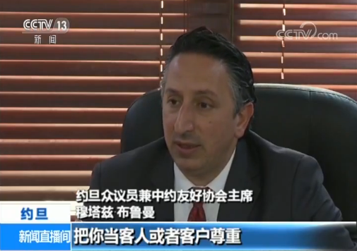 约旦众议员兼中约友好协会主席 穆塔兹·布鲁曼(Mutaz Bluman):当我看到中国人是如何努力工作时,我非常尊重他们 。我参观中国的工厂时发现,那里的一切都井井有条,约旦和约旦人以及约旦的工厂都应该向中国学习,学习中国人的毅力和切实有效的工作作风。我非常尊重中国的处世标准,我认为中国人非常愿意帮助他人,讲究实效、高度文明,把你当客人或者客户尊重。我希望给其他国家一个很好的建议,去中国,向这样一个有着悠久历史同时又乐于助人共促文明发展的国家学习。