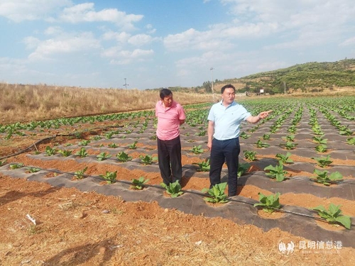 昆明信息港讯 通讯员李进 5月8日,阳宗海管委会副主任金烔平检查全区烤烟移栽情况,实地踏勘烤烟抗旱保苗情况。