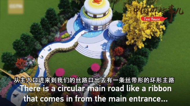 吉尔吉斯斯坦是古代丝绸之路包括现代“一带一路”重要的一个国家节点,展园从入口到出口有一条丝带形的环形主路,路上有雕刻的地标,从中国长安出发,中间经过很多国家最终到达吉尔吉斯斯坦,体现了丝路文化。
