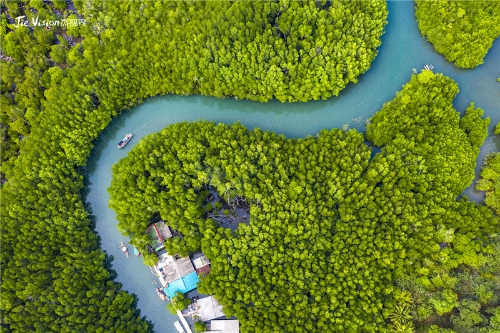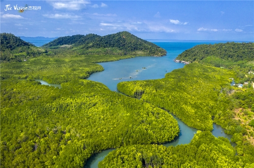 沿一条狭窄的河道顺流而下就是海湾,河道两岸是茂密的红树林,这也是泰国保存最完好的红树林之一。