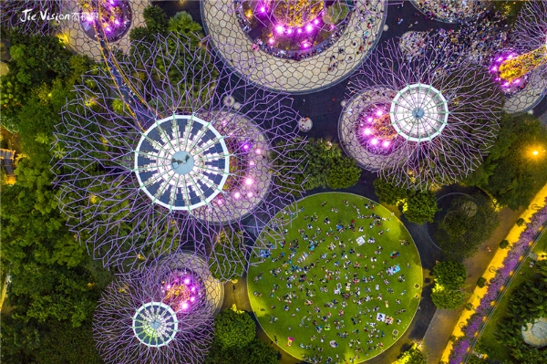 擎天大树的部分“树冠”安装了光伏电池,可吸收太阳能,供夜间照明。