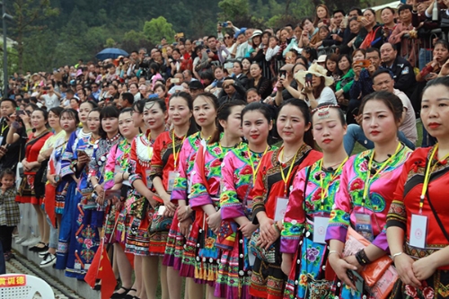 5月12日上午,2019湖南邵阳绥宁苗族四月八姑娘节在绥宁县黄桑景区开幕。