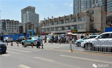 配合施工工程,昆明交警对施工现场及周边区域进行了交通组织优化调整,完善安全警示标志,并派员值守,进行交通疏导指挥,维护道路交通秩序,同时责令并督促施工方做好疏解便道及疏解范围内道路路面及相关交通安全标志、设施的日常管养维护,确保便道的通行安全。