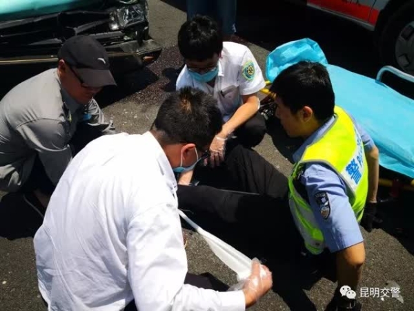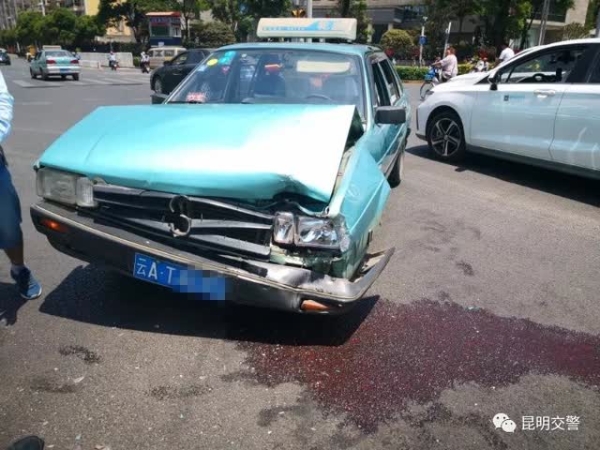 昆明一孕妇昏倒 交警开道护送却被出租车撞翻