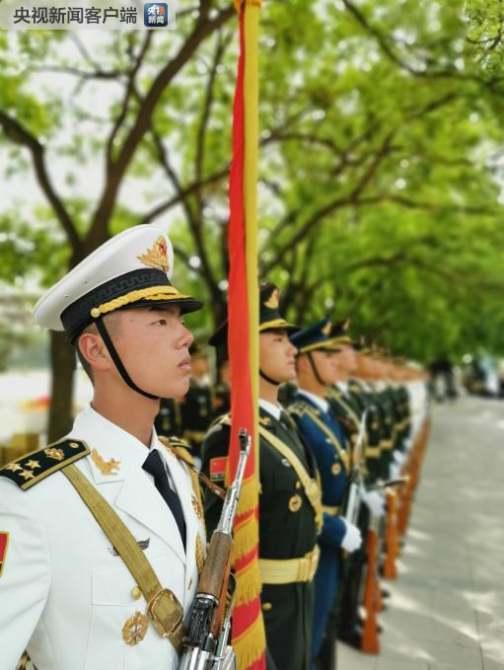 三军仪仗队正在列队。(央视记者荆伟拍摄)