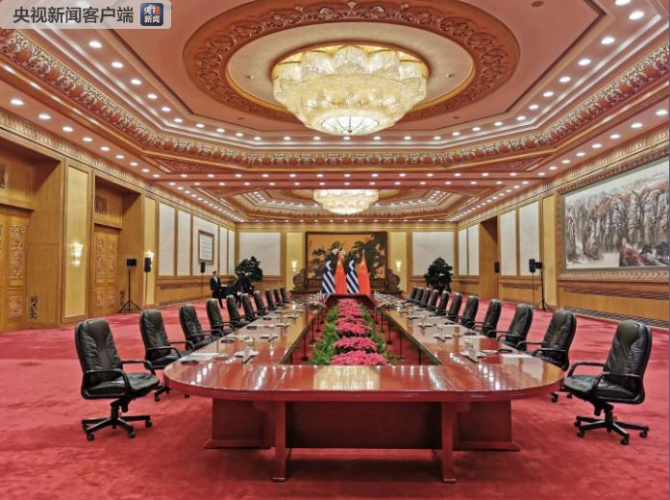 习近平和希腊总统帕夫洛普洛斯在人民大会堂东大厅会谈。(央视记者荆伟拍摄)