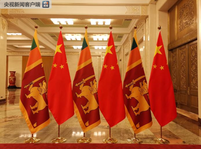 习近平与斯里兰卡总统西里塞纳握手处。(央视记者杨立峰拍摄)