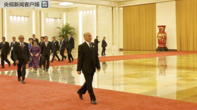 前来与习近平会面的柬埔寨国王西哈莫尼。(央视记者许永松拍摄)