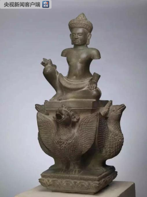 这是正在中国国家博物馆展出的石雕伐楼拿神像(10世纪后半叶)。它是柬埔寨国家博物馆的藏品。