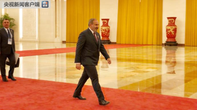 前来与习近平会面的亚美尼亚总理帕什尼扬。(央视记者许永松拍摄)