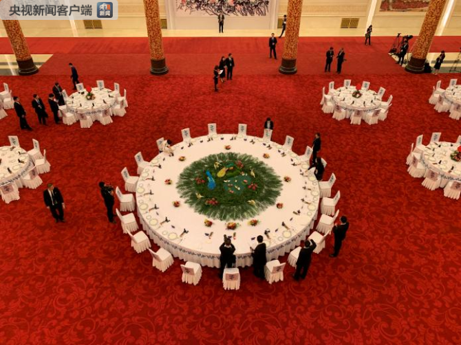 当晚,在人民大会堂金色大厅,习近平主席和夫人彭丽媛举行宴会,欢迎出席亚洲文明对话大会的外方领导人夫妇及嘉宾。
