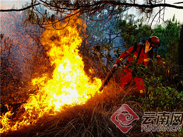 11时40分,由于风力增大,火场气温升高,火场西南线偏西方向出现新火点火线。联指决定,云南森林消防总队新训大队120名指战员迅速移交火场东北线,紧急转场该段火线扑救,地方专业队100人协同配合施救。