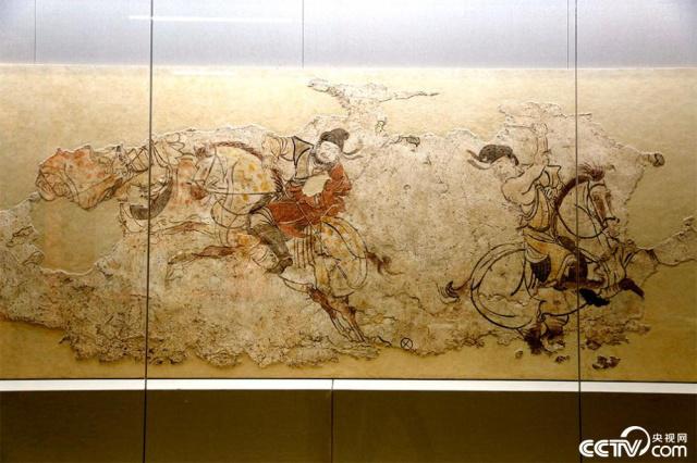 2004年在陕西省富平县出土的唐代马球图壁画。