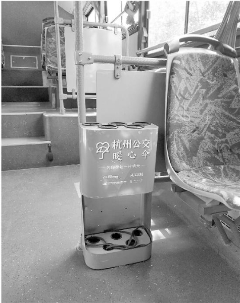 由于600多把暖心伞尚未归还,公交车上的伞架上出现了“断档”的尴尬。