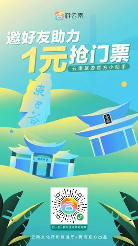 活动期内,游客可使用“游云南”官方小程序邀请5名微信好友助力,可享“门票1元购”优惠。先完成助力的前6666名用户,即可获得活动期间1元购买活动景区门票的优惠。活动景区分别为:昆明金殿景区、西双版纳原始森林公园、红河建水朱家花园、大理罗荃半岛旅游区、丽江东巴谷景区。