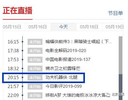 2019年5月16日《北京晚报》42版“今日电视节目预告”截图
