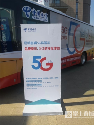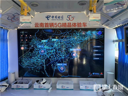 据介绍,作为全省首辆由中国电信与昆明公交联手打造的5g精品体验公交,公交上不仅可以通过4G手机连接5G网络,感受超越4G网速10倍的5G网速,更将通过智慧大屏和机器人互动向市民持续展现昆明5G试点建设成果。