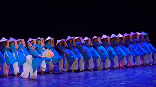 大幕拉开,蔚蓝色的灯光打下来,一群“海的女儿”头戴斗笠身着蓝衣踏浪而来,揭开了群星奖为期4天的比赛环节。第一天,舞蹈类的21个节目分两场比赛进行。