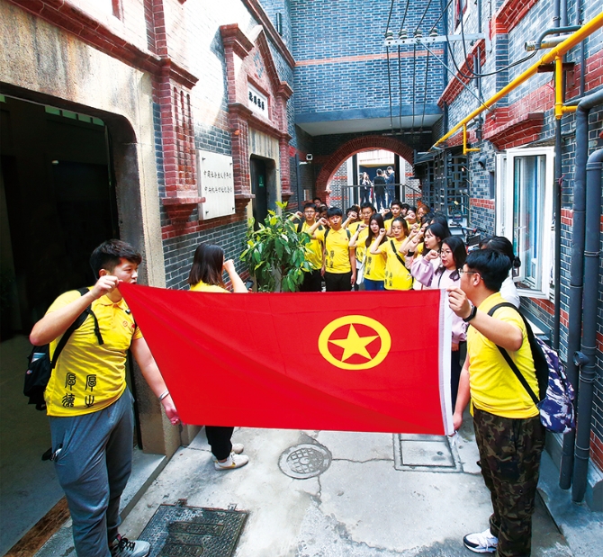 位于上海淮海中路的“渔阳里”是中国社会主义青年团中央机关旧址所在地,也是五四运动后众多有志青年的聚集地。渔阳里旧址纪念馆于今年“五四”前夕修缮完毕,正式开放。图为5月4日,同济大学化学科学与工程学院的团员青年在纪念馆开展纪念五四运动100周年主题团日活动。 团中央宣传部供图