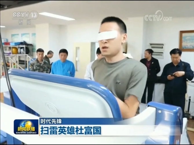 在陆军军医大学西南医院里,杜富国正进行康复治疗,他已经能在特制的跑步机上跑步了,3000米用时13分多,体能恢复到了受伤前的状态。