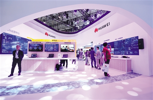 一季度,我国高技术产业增加值同比增长7.8%,增速高于全部规模以上工业1.3个百分点。图为观众在天津第三届世界智能大会智能科技展华为展台参观(5月16日摄)。新华社记者 岳月伟摄