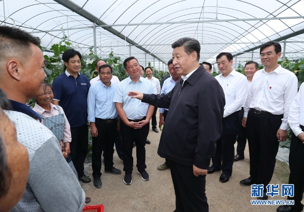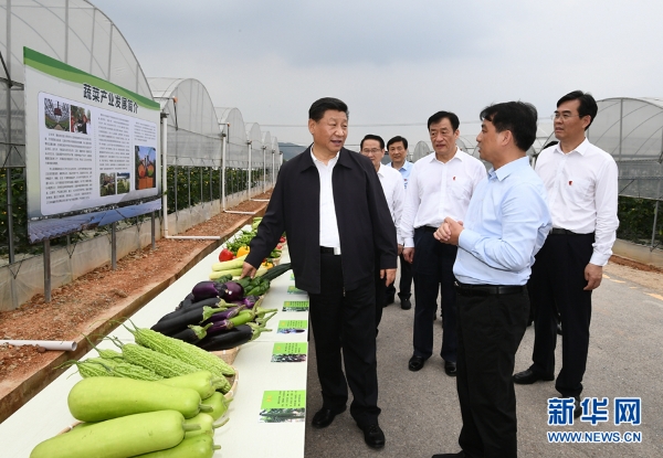 5月20日,中共中央总书记、国家主席、中央军委主席习近平深入赣南老区考察调研。这是习近平在江西省于都县梓山富硒蔬菜产业园考察调研。 新华社记者 谢环驰 摄