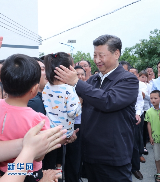 5月20日,中共中央总书记、国家主席、中央军委主席习近平深入赣南老区考察调研。这是习近平来到赣州市于都县梓山镇潭头村亲切看望老区群众。 新华社记者 鞠鹏 摄