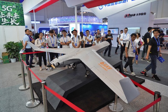 5月21日,在昆明滇池国际会展中心,工业无人机吸引众多参观者驻足了解。(新华社记者 秦晴/摄)