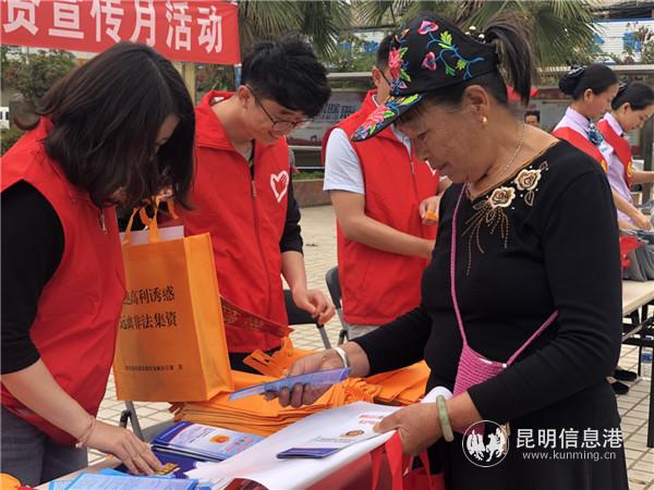 昆明信息港讯 记者李莹 为增强居民群众防范网络诈骗犯罪常识,提高非法集资的识别能力,切实维护辖区居民的切身利益,维护社会的稳定。5月22日,昆明阳宗海风景名胜区金融办联合14家机关单位及4家金融机构在汤池街道姜汤小区小广场开展了防范非法集资专场宣传活动。