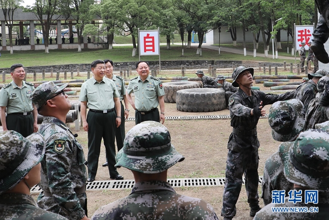 在陆军步兵学院,习主席来到训练场观看学员们障碍训练和极限训练,让学员们倍感亲切,倍受鼓舞。