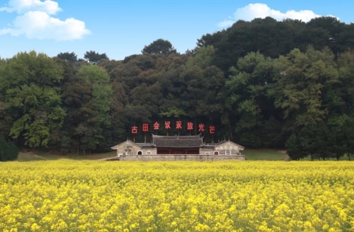 △白墙青瓦的古田会议会址庄重古朴,“古田会议永放光芒”8个大字熠熠生辉。1929年12月28日至29日,红四军第九次代表大会在此召开,史称“古田会议”。