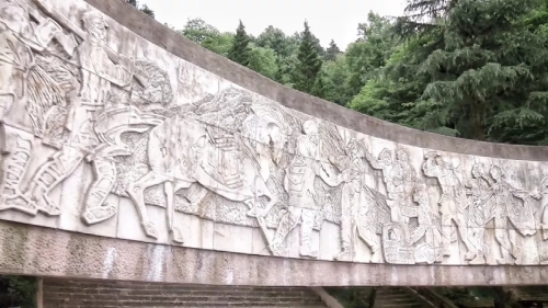 △纪念碑四周的浮雕展现了当年红军浴血奋战的场景。
