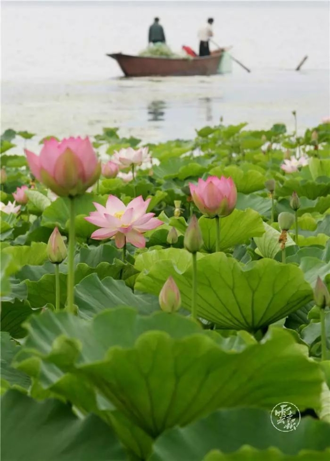 每年夏季,朵朵荷花便会竞相开放,一片片荷叶如碧玉般铺满了荷塘,绽放的荷花更是挺出水面,或亭亭玉立,或婀娜多姿,像极了轻摇曼舞的美裙,扶风凌波。