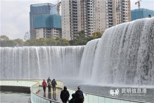 昆明瀑布公园作为牛栏江引水入滇工程昆明出水口,因自然地势落差,形成高12.5米,宽400米的人工瀑布景色。目前公园已建设成为昆明市法制主题公园、健康主题公园和应急避难场所,并成为昆明北部山水新城环境优美、景观独特的城市公园,深受市民的欢迎和喜爱。