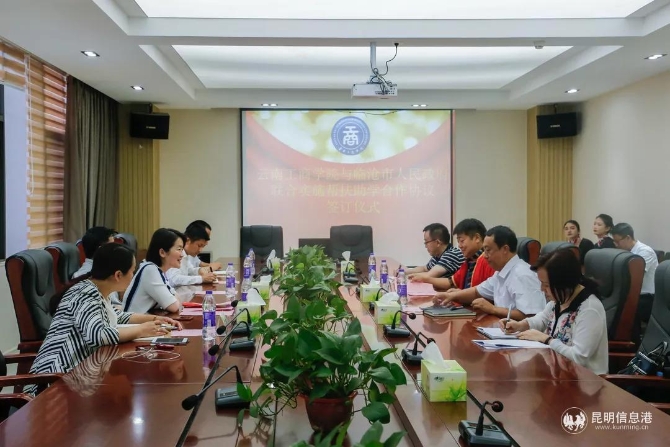 参观结束后,校地领导前往力行楼参加了云南工商学院与临沧市人民政府联合实施帮扶助学合作协议签订仪式。