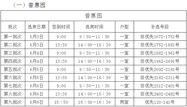 普惠园项目一室非优先组1672-2482号,两室优先组120-141号,可于5月27日至5月29日上午9:00-12:00、下午13:30-17:00,将材料提交至五华区平政街28号五华区住房和城乡建设局404室,咨询电话:0871-65199120。
