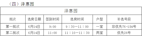 泽惠园项目一室非优先组76-184号,两室优先组26号,可于6月10日至6月11日上午9:00-12:00、下午13:30-16:00,材料提交至昆州路1252号人和新居南区物业管理处大厅,咨询电话:0871-68405669。