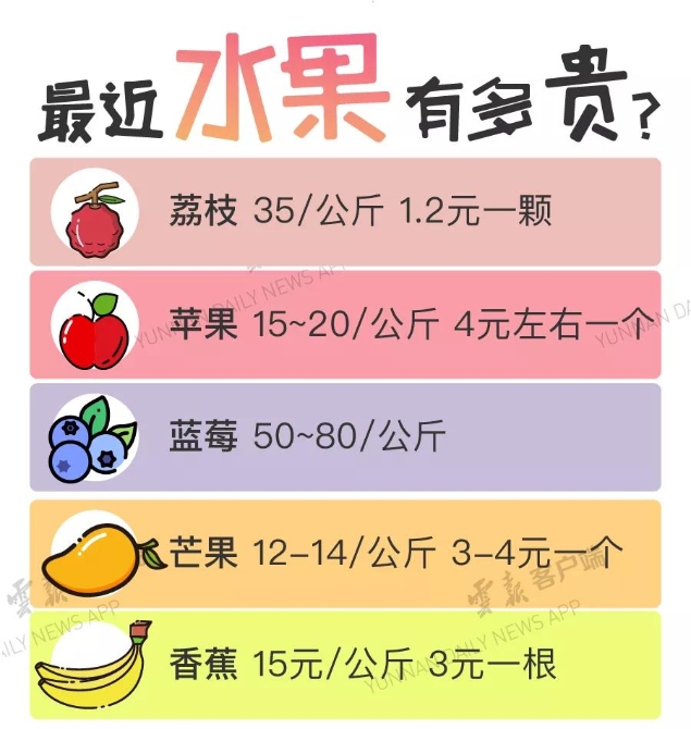 五里多农博广场市场管理科冯立:云南产的水果价高,与去年我省部分地区冰雹等极端天气造成的减产有关。此外,云南作为水果的主产区,省外批发商增加也导致了本省水果批发价的上扬,水果价格跟着“水涨船高”。