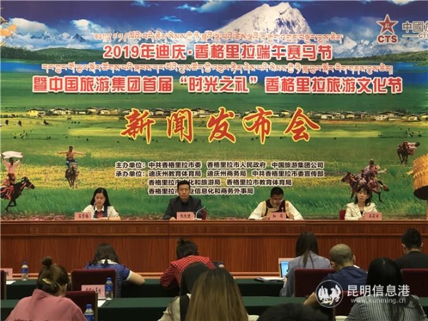 昆明信息港讯 记者徐毅杰 5月24日,中共香格里拉市委、香格里拉市人民政府、中国旅游集团公司联合在昆明海埂会堂召开新闻发布会。发布将于6月7日至6月20日举办2019迪庆·香格里拉端午赛马节暨中国旅游集团首届“时光之礼”香格里拉旅游文化节。