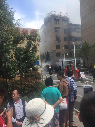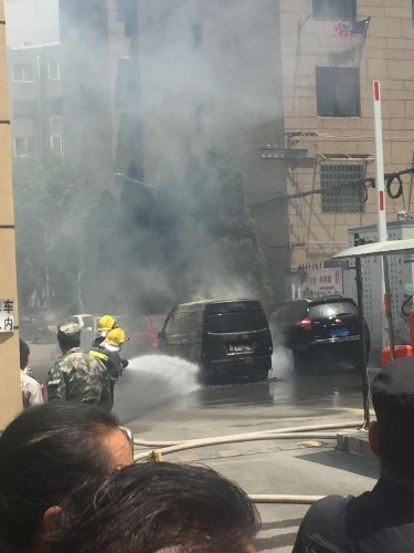 昆明丹霞路红塔组团小区内一辆面包车自燃