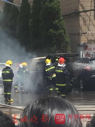 今天中11点45左右,昆明丹霞路红塔组团小区内,一辆白色的面包车发生自燃。