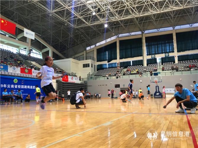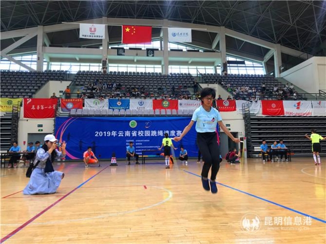 昆明信息港讯 记者周智宇 5月25日,2019年云南省校园跳绳速度赛在昆明学院洋浦校区举行,来自全省大、中小学校及中等职业学校的932名运动员参加了本次比赛。