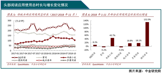 此外,阅文集团与微信联动,推出微信读书,利用朋友圈与微信群的传播效应,快速吸粉,活跃用户数已接近千万。用户使用总时长也增长迅速,中金研究报告显示,2018年1-11月份,微信阅读使用总时长增长高达132%,而同期掌阅科技却出现5.2%的下滑。