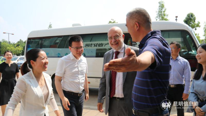 昆明信息港讯 通讯员王迎楷 5月23日,法国尼斯市第一副市长Christian Tordo先生、欧盟国际城镇合作项目副主任史欣、欧盟国际城镇合作项目活动与沟通经理张颖、昆明市市发改委梅俊辉副主任一行到昆明呈贡信息产业园区参观调研。昆明市呈贡区人民政府副区长王丹、昆明呈贡信息产业园区党工委副书记李继坤等相关人员陪同调研。