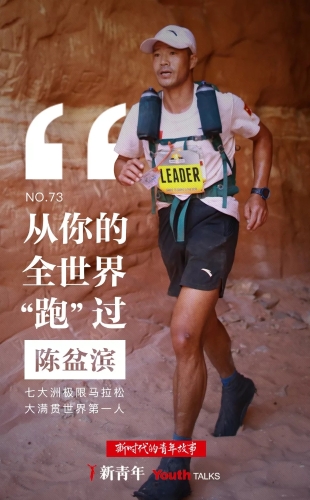 2009年,有人告诉我,国外有一种极限马拉松,跑更长的距离。我就义无反顾地去了法国环勃朗峰106公里耐力赛。当看到中国的国旗升起来,我说,我一定要参加七大洲的比赛。因为我希望通过陈盆滨在跑步领域的影响力,去普及运动知识,让大家更好地、健康地成长。